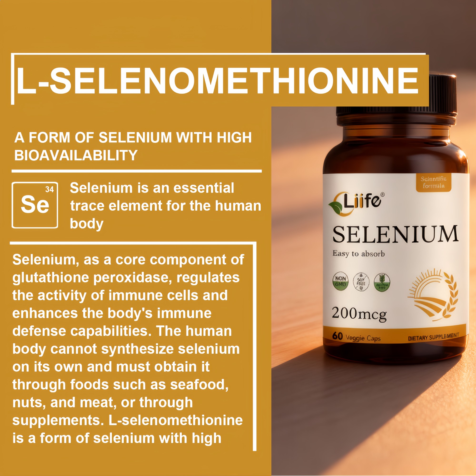 - Natural Active Organic Complex Formula: LIIFE utilizes fourth-generation organic L-selenomethionine, offering twice the bioactivity of standard inorganic selenium. Common malt, selenium, and yeast selenium carry allergy risks and gluten exposure. Human bioavailability exceeds 90%.