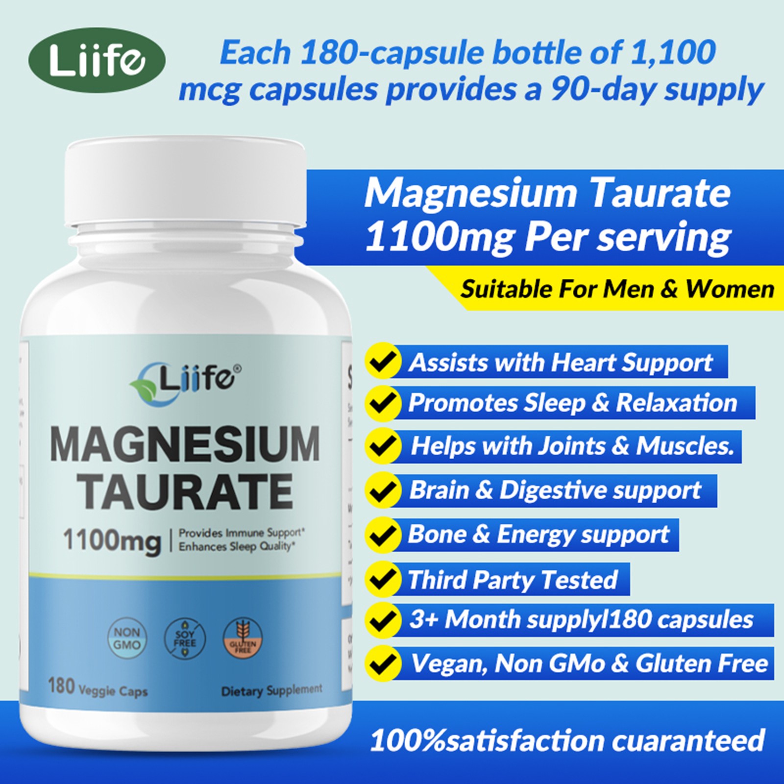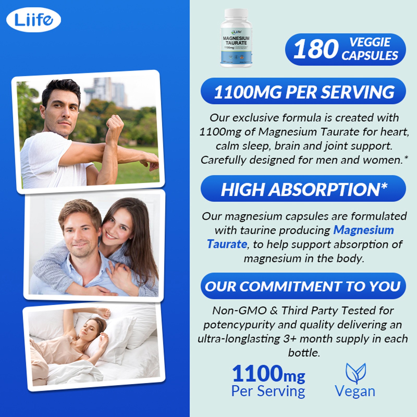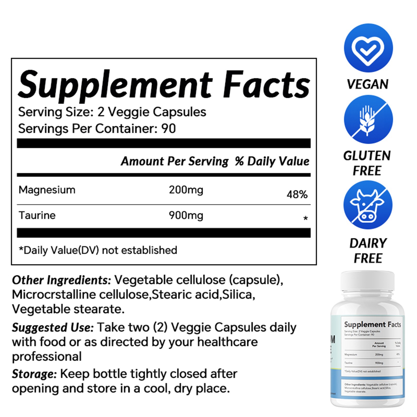 - Taurine-Magnesium Synergy: Doubles Absorption The taurine-magnesium pairing boosts nutrient uptake far beyond single supplements. Each bottle contains 180 veggie capsules (90 servings), delivering a convenient 3-month supply.